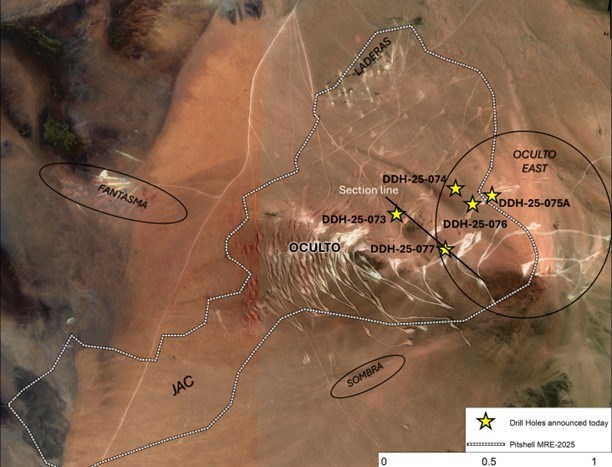 Dave O’Connor, Chief Geologist, commented, “Drilling at Oculto East continues to confirm broad, high-grade gold mineralization extending well beyond the eastern margin of the conceptual open pit. The consistency of these strong intercepts points to a large, continuous mineralized envelope with significant potential for further expansion.”