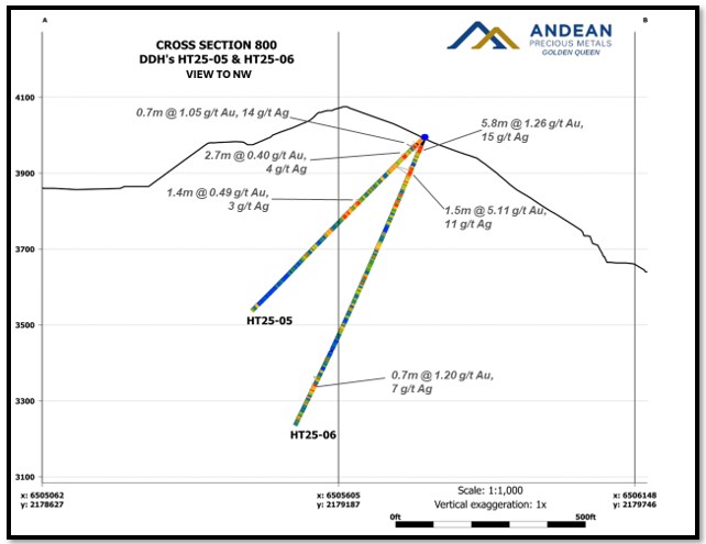 Figure 4 – Cross Section 800 (DDH’s HT25-05 and HT25-06)