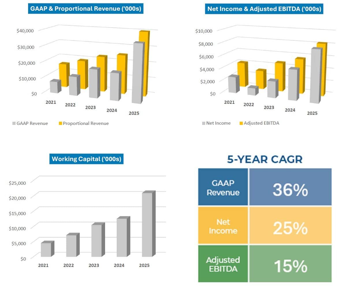 - Record GAAP Revenues of $35.5 million and Proportional Revenues of $39.9 million in 2025, an increase of $18.4 million (107%) and $15.1 million (61%) respectively compared to 2024.