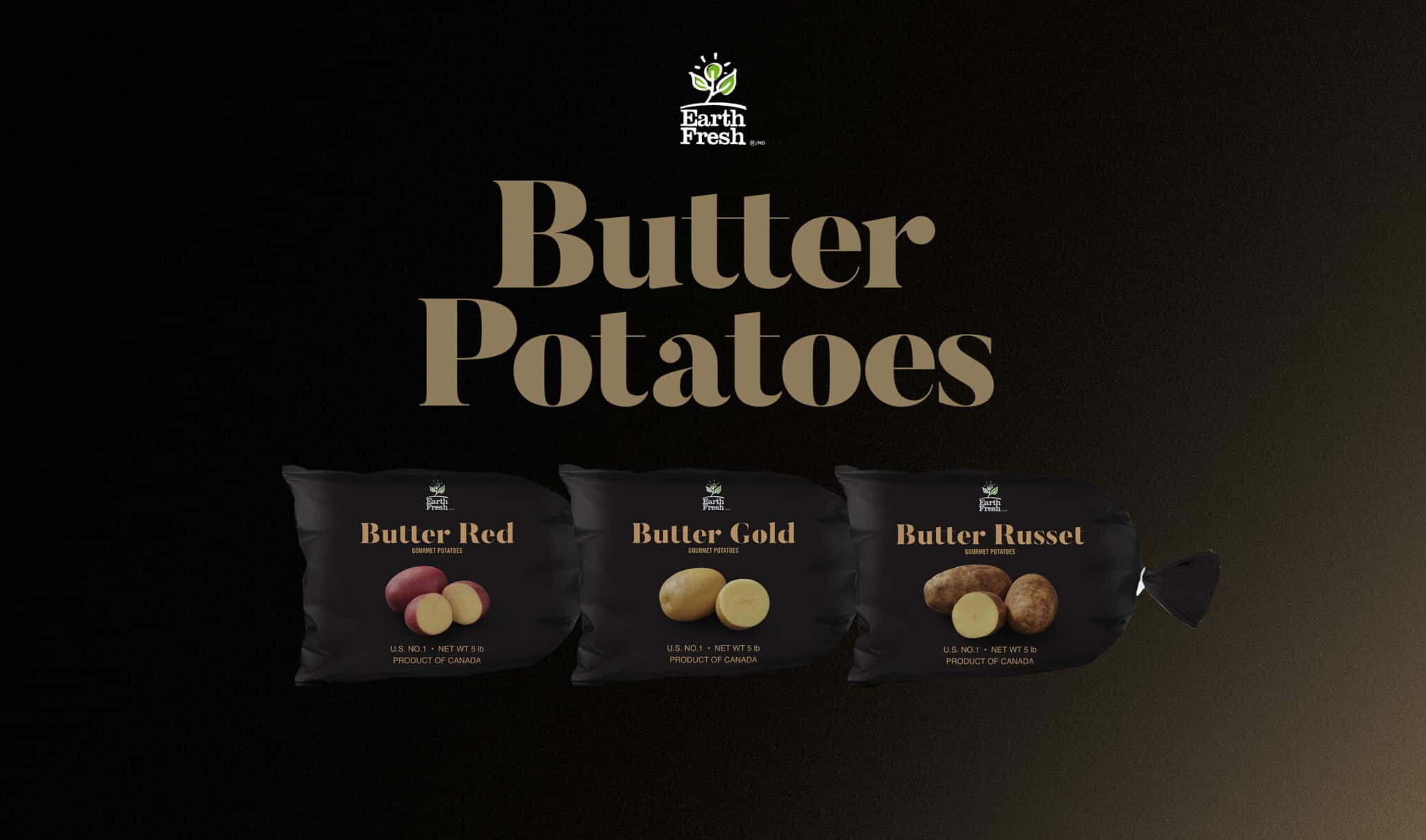 EarthFresh Butter Potatoes are now available on shelves across the country. Look for Butter Golds, Butter Reds, and Butter Russets in convenient 5 lb bags. Retailers interested in these exclusive varieties can learn more at EarthFreshFoods.com/Butter.