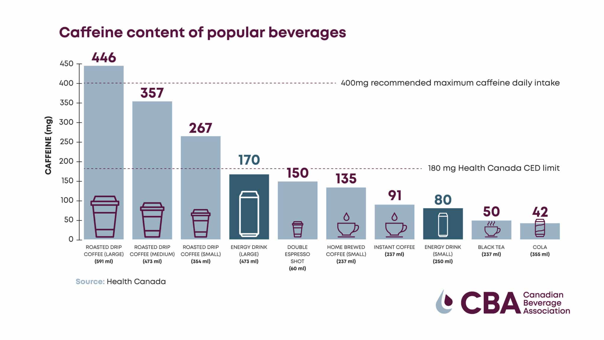 “Providing clear, accurate information about energy drinks is critical,” said Krista Scaldwell, President of the Canadian Beverage Association. “Our industry is committed to strict marketing guidelines, as set out in the CBA Energy Drink Marketing Code, and has made a longstanding pledge to not sell energy drinks in primary, middle or high schools. The Canadian Beverage Association believes that an evidence-based discussion about caffeine is more constructive than singling out a specific product category without regard to scientific evidence or consumption patterns.”