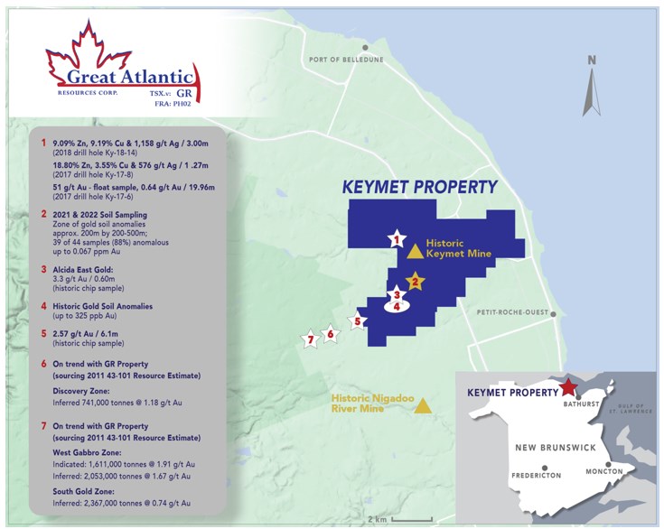 Great Atlantic Begins New and Additional Sampling of Drill Core – Previous Samples Included 1,158 g/t Silver, 9.04% Zinc, and 9.19% Copper over 3 Meters at Its 100% Owned Keymet Precious Metal – Base Metal Property, Northeast New Brunswick