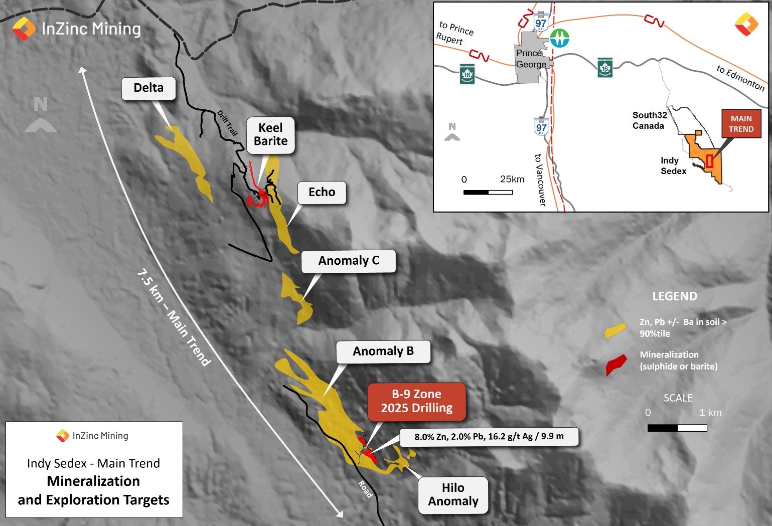 Vancouver, British Columbia–(Newsfile Corp. – October 21, 2025) – InZinc Mining Ltd. (TSXV: IZN) (“InZinc” or the “Company”) announces that it has accelerated the analysis of samples from Phase 2, 2025 diamond drilling located 300 m north of the recently expanded 700 m B-9 Zone. The 100% owned Indy Sedex (zinc-lead-silver-gallium-barite) project is well-located 90 km southeast of Prince George in central BC, Canada. Results of analysis from prioritized samples are anticipated in approximately 4 – 5 weeks.