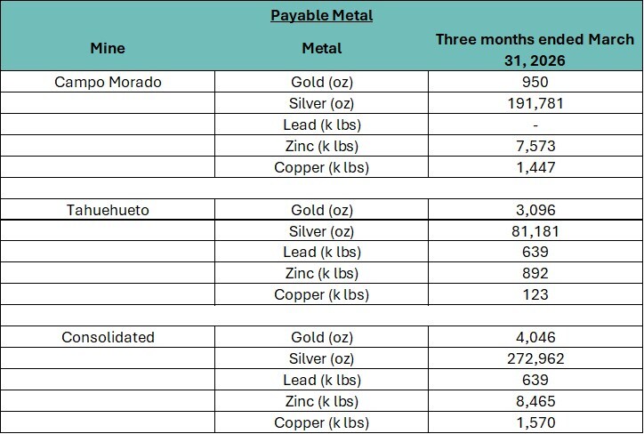 “We started 2026 on strong footing, with solid operating performance and strong silver production in a favorable price environment,” said Dan Barnholden, Chief Executive Officer. “We remain focused on operational improvements at both mines, with particular emphasis on Campo Morado as we advance the Campo Morado Expansion study toward a technical report in the second half of 2026.”