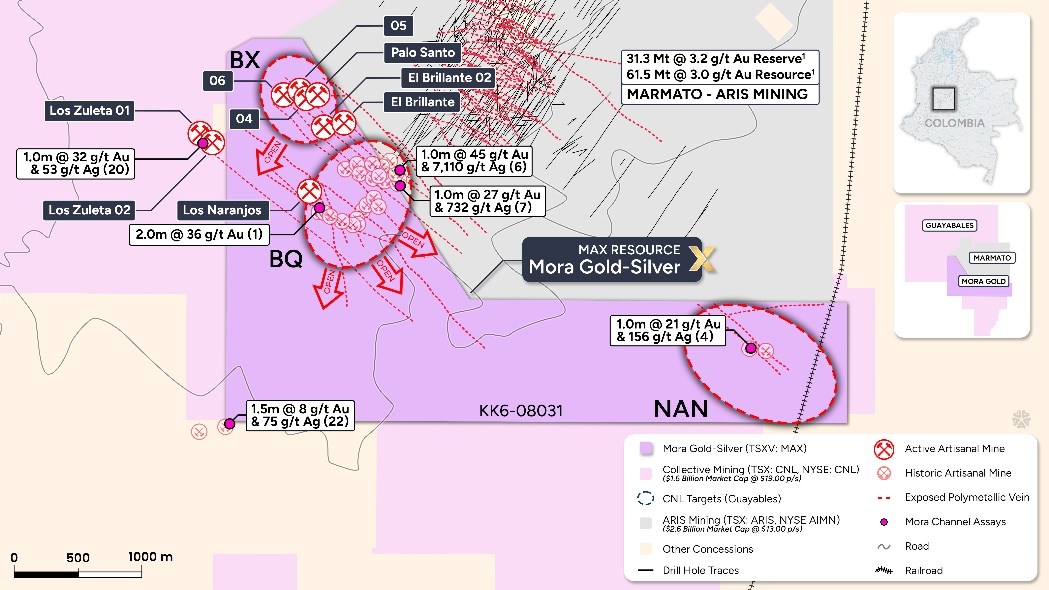 In September 2025, Max reported the appointment of Mr. Sergio Cocunubo as Head Geologist, reuniting with key Technical Advisor Dr. Chris Grainger and Community Relations specialist Mr. John Henao, all key members of the Collective Mining and the Continental Gold team that developed the Buriticá Gold Deposit³ Deposit (P&P Reserves: 3.8Mozs at 6.9 g/t Au & 13Mozs at 24g/t Ag in 15.61Mt and M&I Resources: 4.4Mozs at 8.9 g/t Au & 14.6Mozs at 29 g/t in 14.02Mt plus Inferred Resources: 5.1Mozs at 8.9 g/t Au & 18Mozs at 29 g/t Ag in 16.2Mt³), sold to Zijin Mining for US $1.4 billion in 2019.