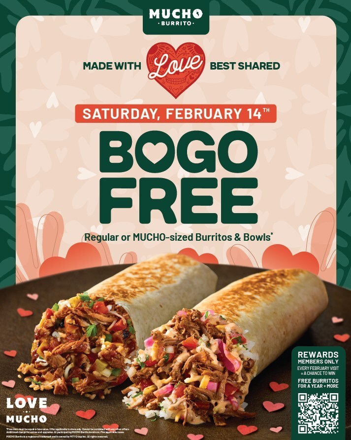 MUCHO Burrito Leads February with Generosity, Community, and a Valentine’s Day Buy One, Get One Free Offer