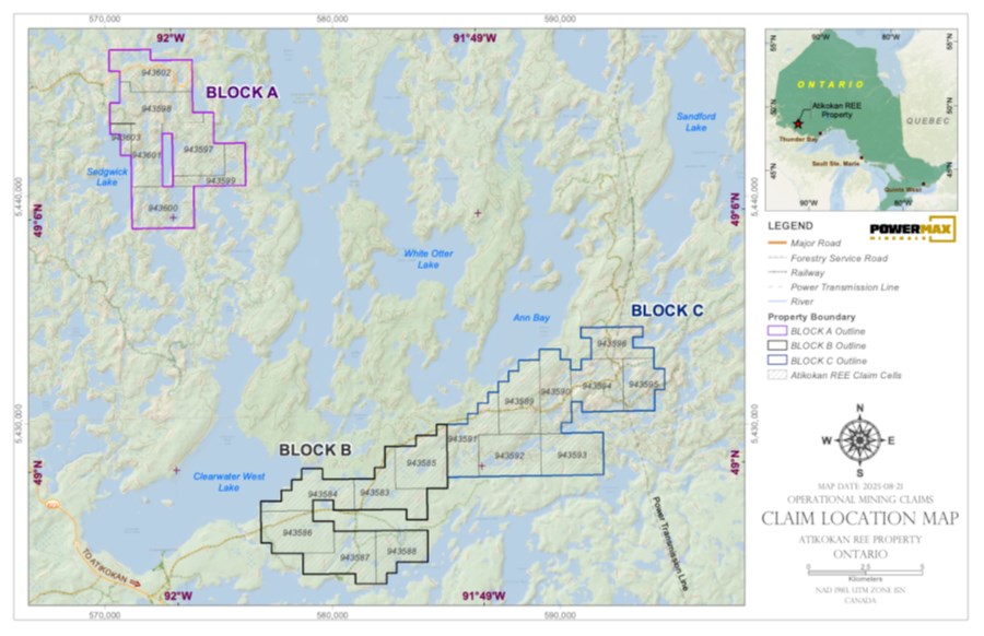 Toronto, Ontario–(Newsfile Corp. – November 18, 2025) – Powermax Minerals Inc. (CSE: PMAX) (OTCQB: PWMXF) (FSE: T23) (the “Company” or “Powermax”) is pleased to announce the successful completion of a high-resolution helicopter-borne magnetic and radiometric survey over its Atikokan Rare Earth Element (REE) Property located in northwestern Ontario. The survey was conducted by Geo Data Solutions GDS Inc. (GDS) of Laval, Québec.
