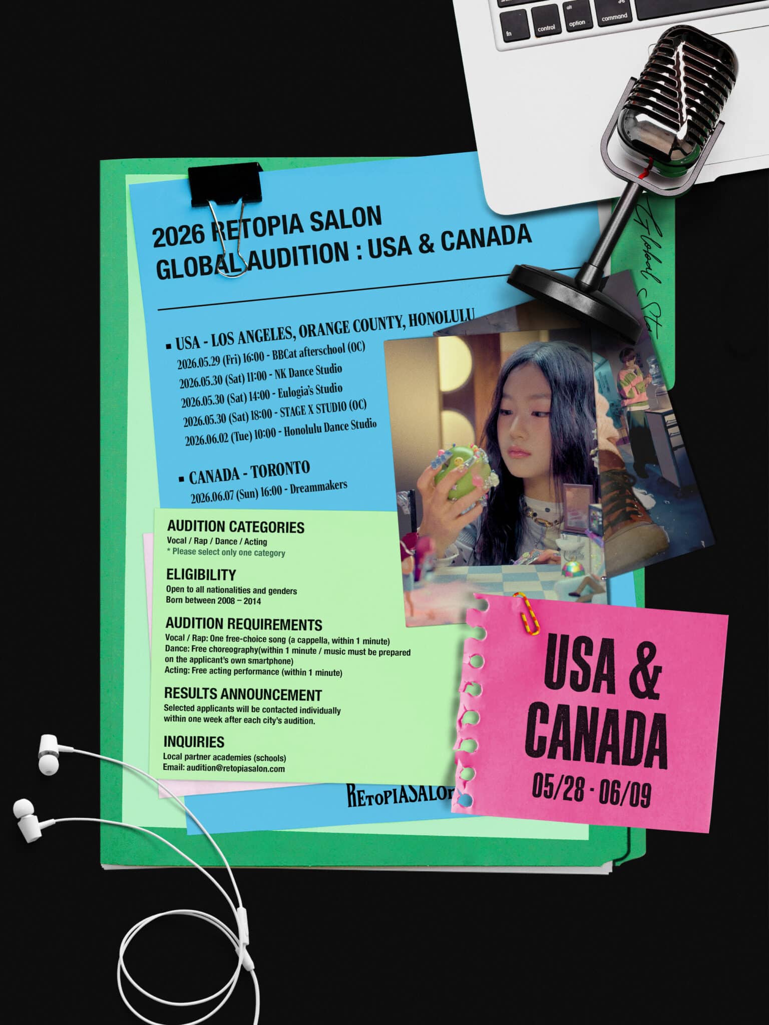 “Under our vision, ‘Make Dreams Real,’ RETOPIA SALON is dedicated to nurturing the next generation of artists based on our extensive experience in the entertainment industry,” said Bang Woo Jung, CEO of RETOPIA SALON. “We look forward to meeting talented individuals through this global audition and hope it will serve as a meaningful first step for those aspiring to perform on the global stage.”