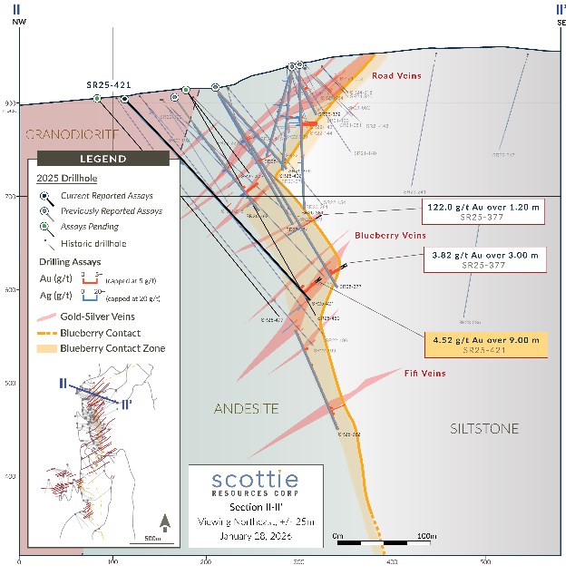 Vancouver, British Columbia–(Newsfile Corp. – January 28, 2026) – Scottie Resources Corp. (TSXV: SCOT) (OTCQB: SCTSF) (FSE: SR80) (“Scottie” or the “Company“) is pleased to report new assays from its 2025 drilling of various zones within the Blueberry Contact Zone, at the Scottie Gold Mine Project (“Scottie Gold Mine” or the “Project”). The road-accessible Project is located 35 kilometres north of Stewart, BC, and is the subject of a newly released Preliminary Economic Assessment (“PEA”) entitled Scottie Gold Mine Project (Bird et al., October 28, 2025, Scottie Gold Mine Project, SEDAR+).